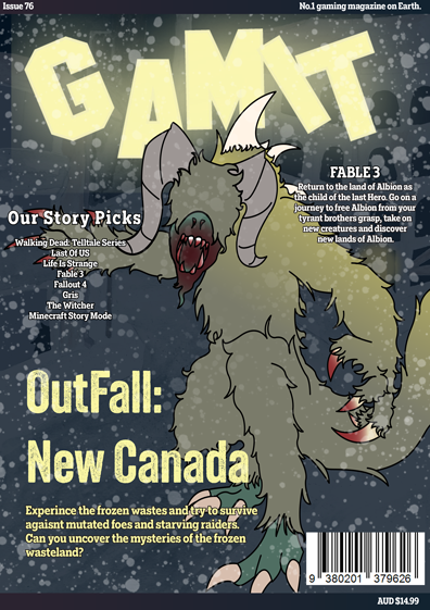My Gamit Magazine is based off the popular game, Fallout. I’ve always loved the concept of a post fallout setting, as it opens up to so many imagintive ideas. Although for my concept, I decided to go in the opposite direction for the setting. Instead of a hot, deserted wasteland, i decided to have mine themed around a frozen wasteland.